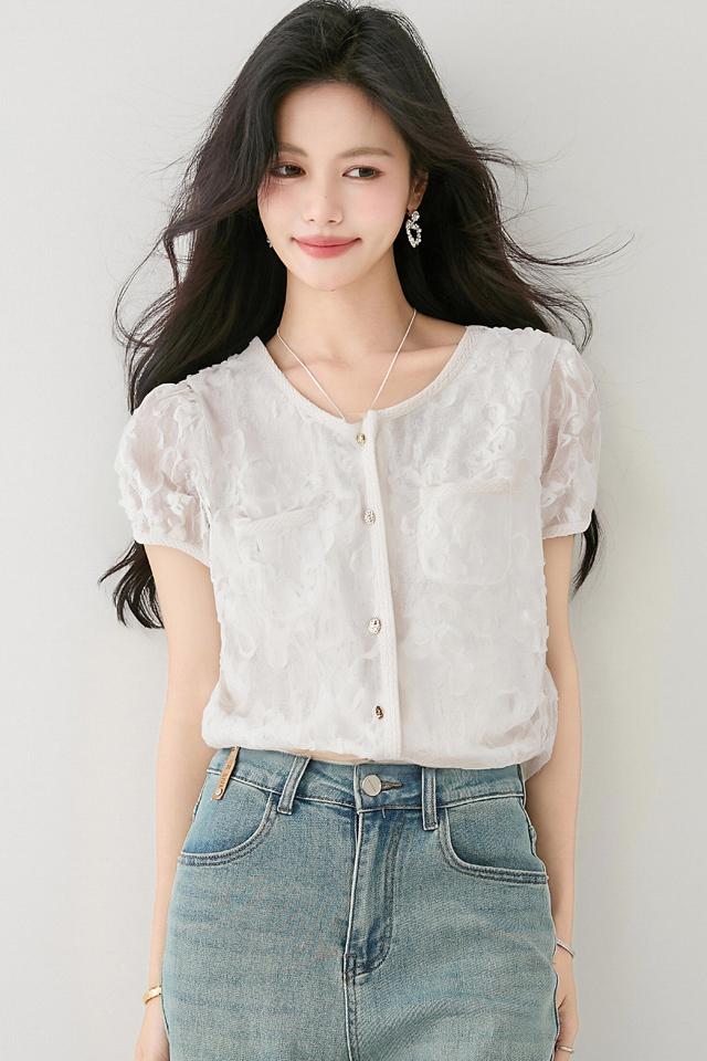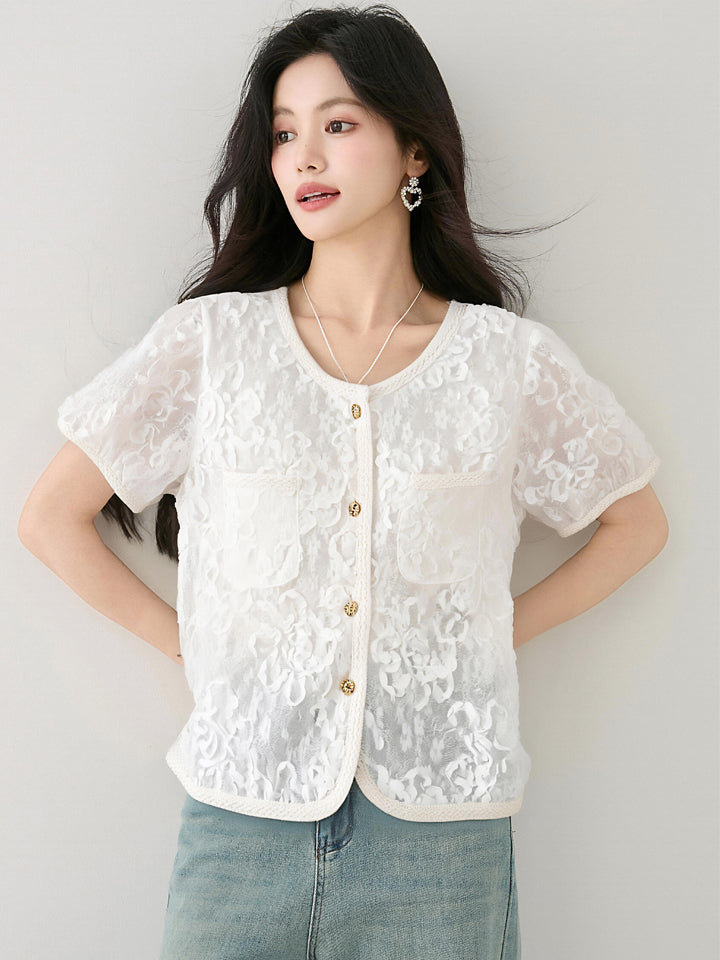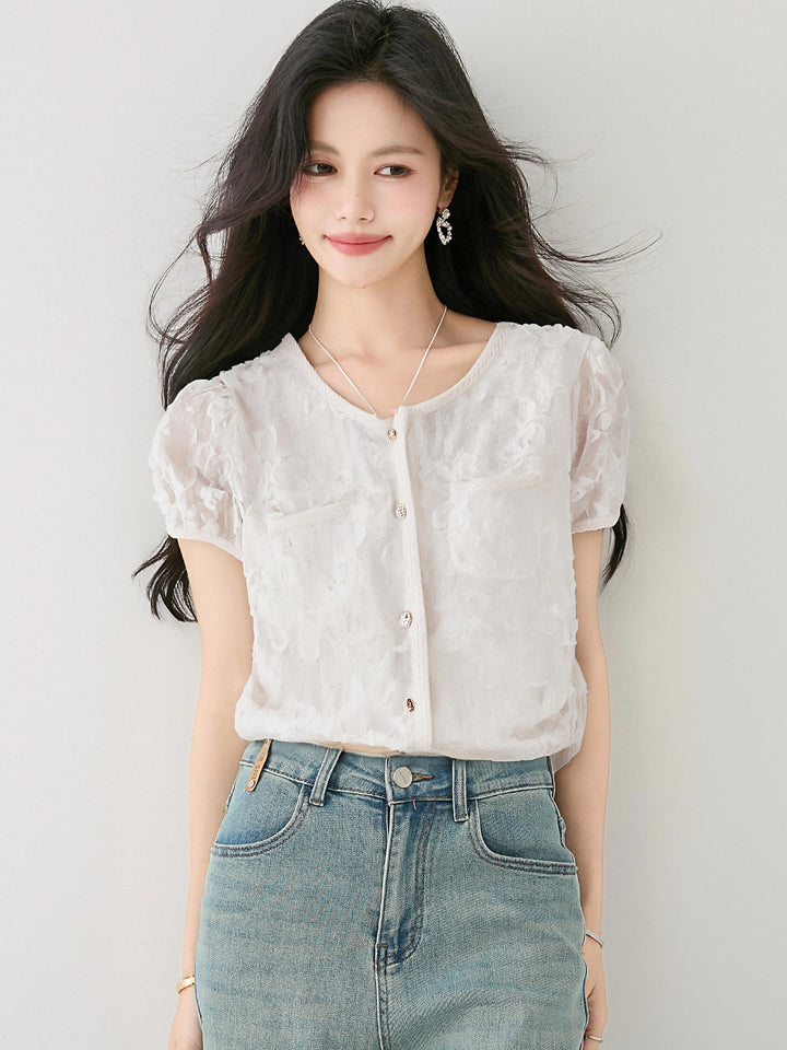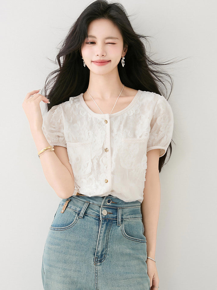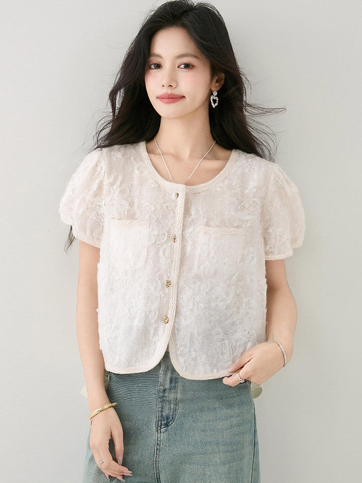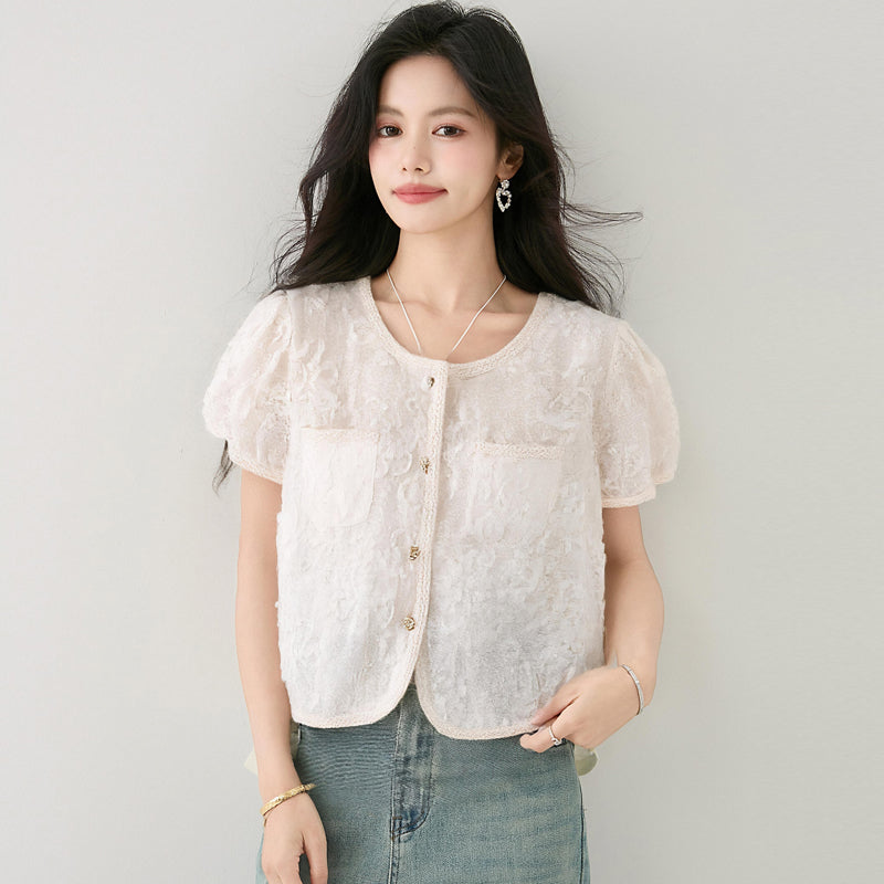 2025年夏新作Xiaoxiangfeng Heavy Industries刺繍バブル半袖タッセルカーディガンスモールシャツトップシャツ